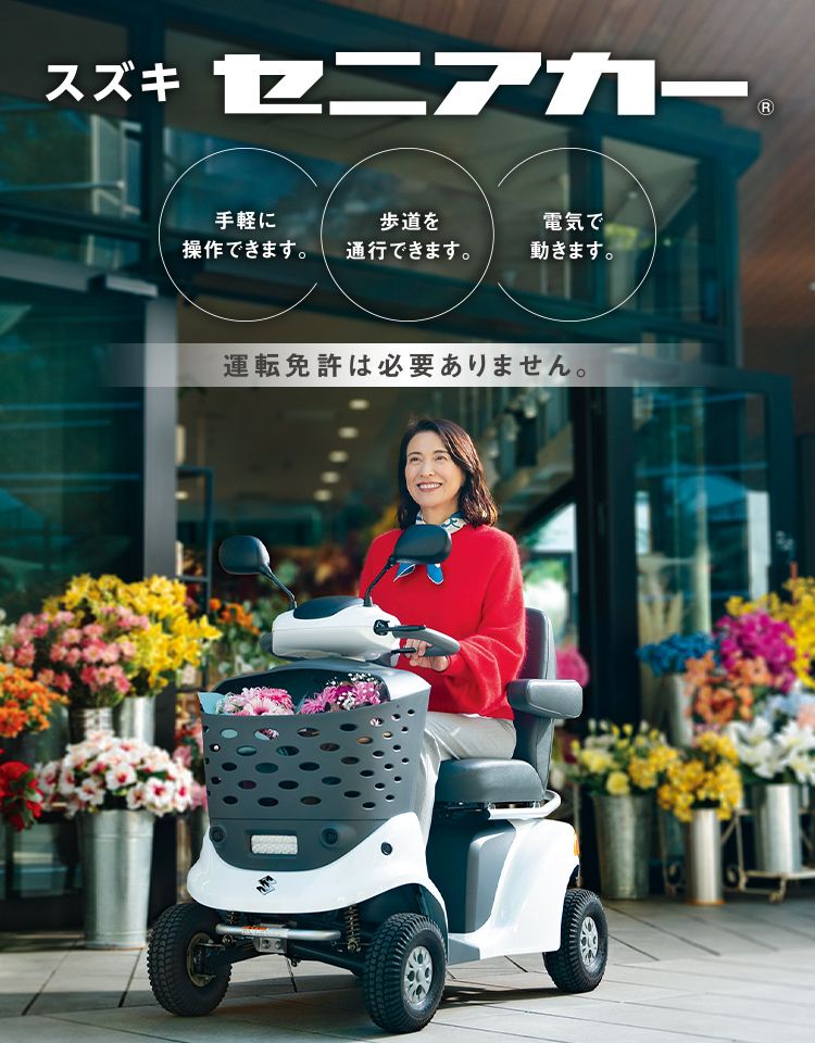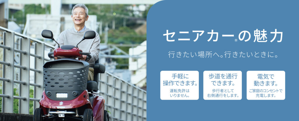 セニアカー セニアカー販売|真庭市・津山市で安全・快適なセニアカーをお探しの方へ 道満モータースへお気軽にお問い合わせください 無料相談・試乗予約はこちら おすすめセニアカースズキ ET4D よくあるセニアカーQ&A Q1.セニアカーには免許が必要ですか?A.免許は必要ありません。 Q2.バッテリーの充電時間はどれくらい?A.バッテリーの状態や気温などによって異なりますが、目安として最長12時間程度です。 Q3.実際の連続走行可能距離はどれくらい?A.使用状況にもよりますが、連続走行距離は約20〜25km程度です。 Q4.真庭市で使える補助金・助成金はありますか?A.2026年2月現在では補助金・助成金はありません。 Q5.津山市で使える補助金・助成金がありますか?A.2026年2月現在では補助金・助成金はありません。 Q6.見積もりや試乗は無料ですか?A.無料です。どんどんお声がけ下さい。 毎日をより自由に、もっと笑顔に。 道満モータースは、創業65年の信頼と実績で、真庭市・津山市の皆様の「移動の喜び」を支えてまいりました。セニアカーは、ただの乗り物ではなく、 毎日の買い物やお散歩、お孫さんとのお出かけを 安全で、快適に、いつまでも楽しめるパートナーです。免許返納後も、歩行が少しつらくなっても、 外に出かける楽しみを諦めないでください。私たちが丁寧に試乗からアフターサポートまでお手伝いします。 今こそ、一歩を踏み出してみませんか? あなたの毎日が、もっと輝くはずです。 無料相談・試乗予約はこちら