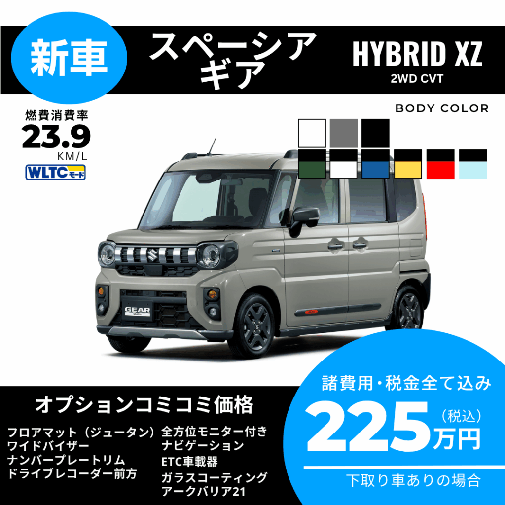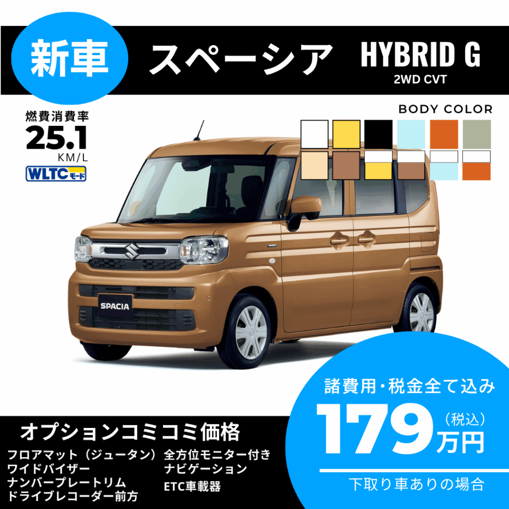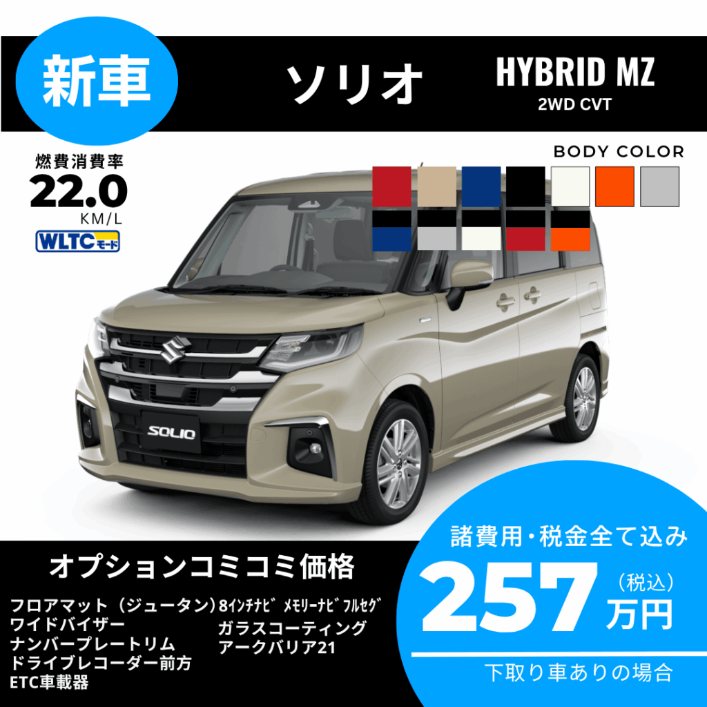 特別塗装色やオプション追加をご希望の場合は、別途費用が必要となります。
