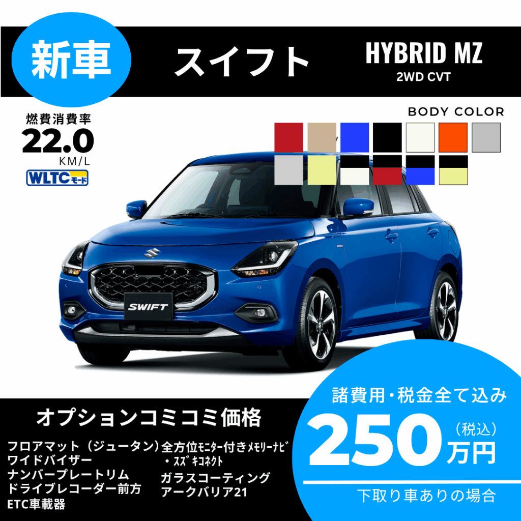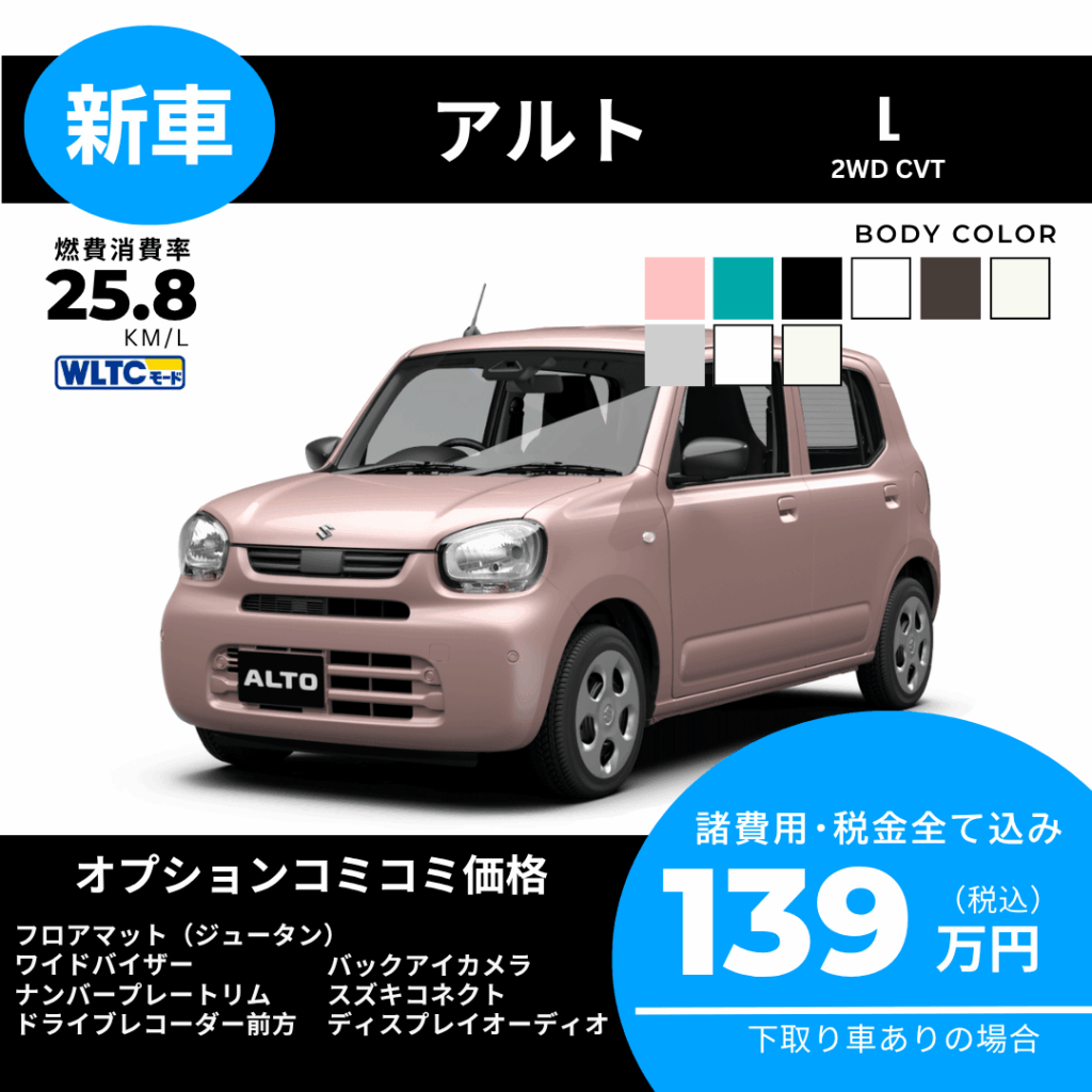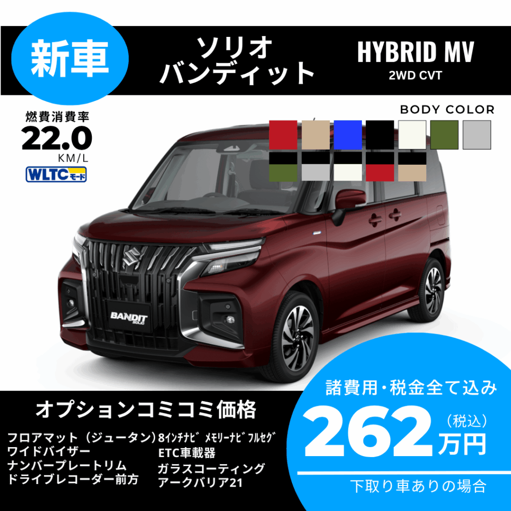 特別塗装色やオプション追加をご希望の場合は、別途費用が必要となります。